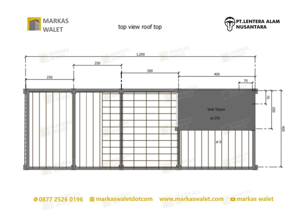 Agar burung walet dapat membuat sarang dengan baik, pembangunan rumah walet 4×6 dibuat dengan tambahan sekat dengan jumlah yang ideal. Sekat rumah walet tidak dibolehkan terlalu banyak karena bisa membuat suhu ruangan jadi panas. Dengan menggunakan jasa kami, kontraktor akan memperhatikan detail struktur bangunan sehingga suhu ruangan terjaga. Jarak antara sekat dibuat antara 30 – 50 cm supaya walet di dalam rumah lebih nyaman.